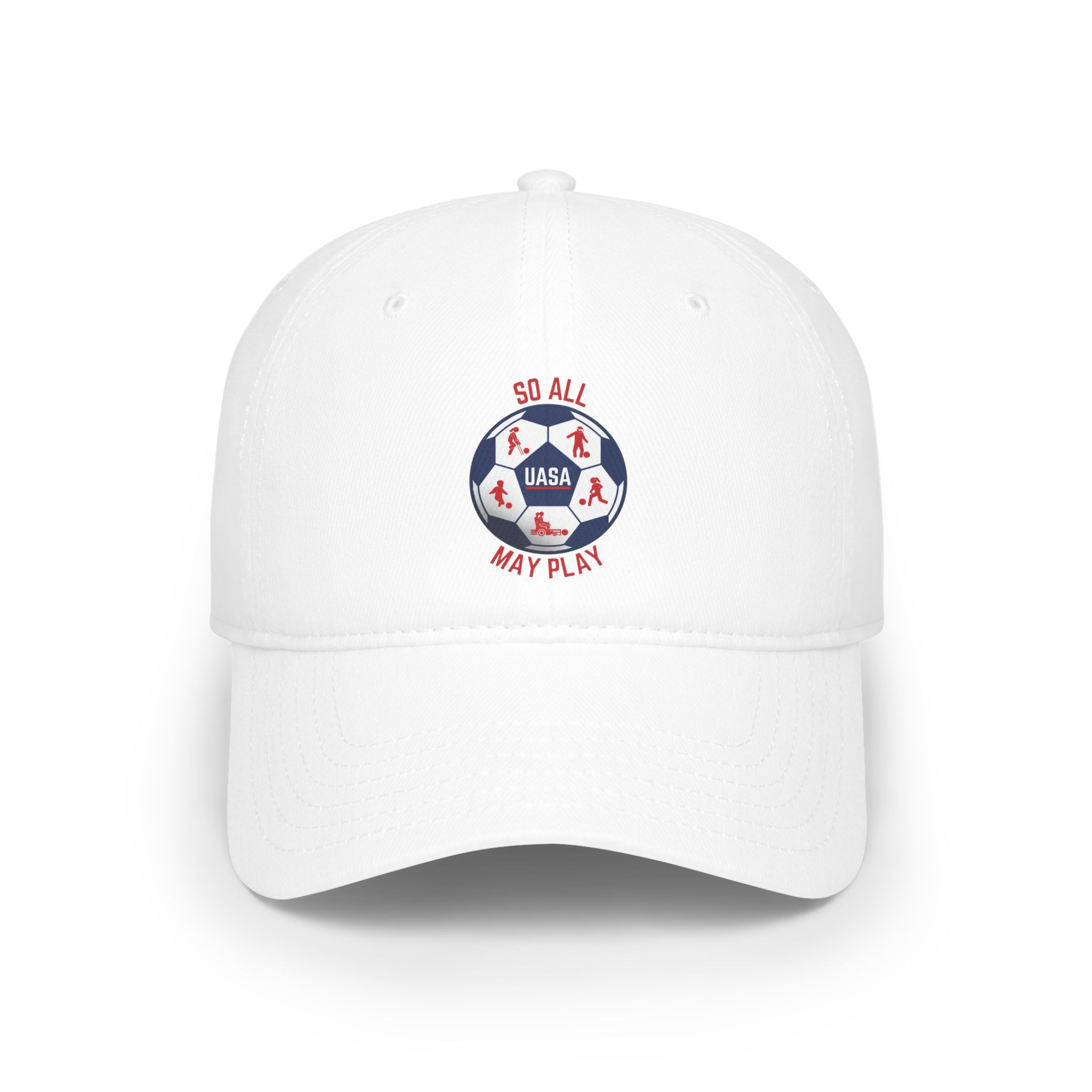 A wardrobe icon, the low-profile baseball cap is a timeless piece reimagined with UASA branding. Made with 100% cotton, this 6-panel, unstructured cap features the signature low-profile look that made it famous beyond the field. Featuring the NEW UASA logo embroidered on the front, this cap is perfect for showing your support for adaptive soccer in everyday style. The adjustable Velcro® closure ensures a secure, comfortable fit for all-day wear.