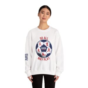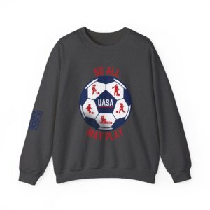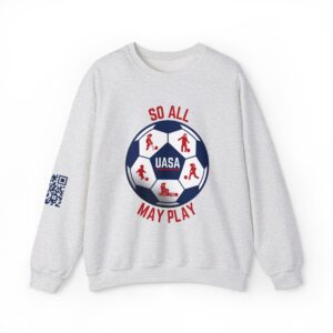 Stay warm and represent UASA with the Unisex Heavy Blend Crewneck Sweatshirt, designed for comfort, durability, and timeless style. Available in white, graphite heather, and ash, this sweatshirt is the perfect fit for colder months and a powerful way to show support for inclusive soccer.