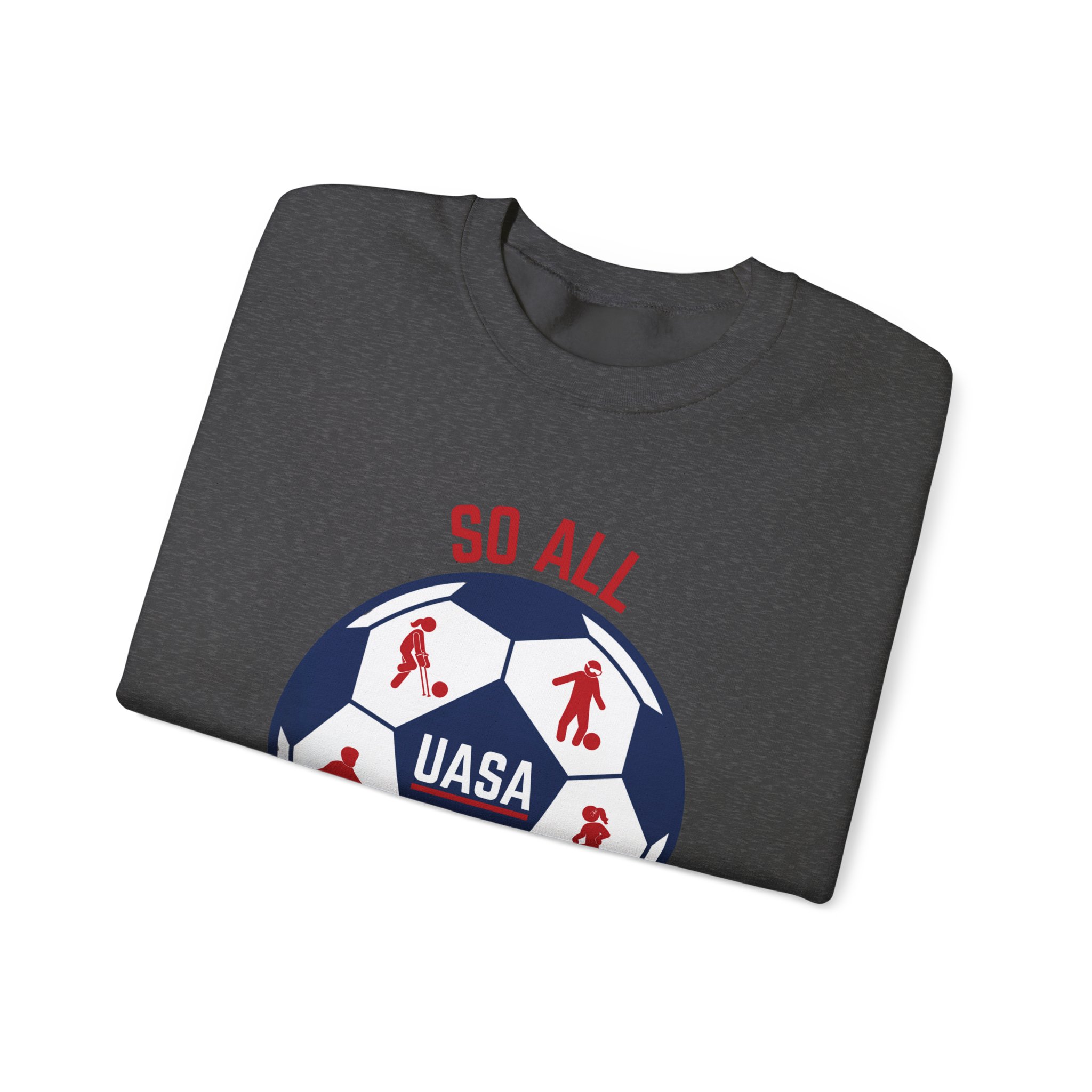 Available in three versatile colors, the UASA Crewneck Sweatshirt blends comfort, sustainability, and purpose—helping you support adaptive soccer pathways with every wear. 🌟